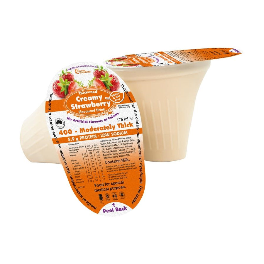 浓稠奶油草莓味饮料将高蛋白和维生素 D 与浓郁的奶油味相结合,使补水变得美味。这种乳制品饮料针对吞咽困难的人进行了增稠,并采用屡获殊荣的吞咽困难杯包装。